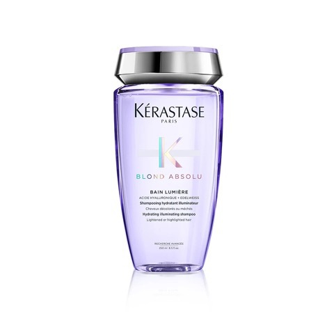 De Blond Absolu Lumiere shampoo, bestaande uit Hyaluron zuur, is een lichte formule dat ideaal is voor verlicht, gebleekt, grijs of licht ontkleurd haar. De subtiel reinigende formule maakt de vezel glad en hydrateert het haar van aanzet tot punt om het haar luchtig te maken en het blond te verlichten. Het ontgift het haar tegen verontreiniging en vrije radicalen. De goede combinatie van Hyaluron zuur en Edelweiss bloem geeft deze formule een hoge concentratie van anti-oxidanten om beschadigingen van het haar te voorkomen en de vezel te beschermen. Hyaluron zuur hydrateert het blonde haar en maakt de vezel glad voor een uniform gevoel op de haarstrengen.